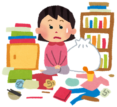 次いで雑誌や本。そして、爪切りのような小物。このトップ3の放置がそもそもよくない。洋服は疲れて帰っても脱いだままにはしない。洗濯物もたたみ終えたらすぐしかるべき場所へ移動。本や雑誌は読みかけて放置したりせず、小物も用事がすんだらその手でかたづける。・・しかし。これができないから散らかるんだよなあ。